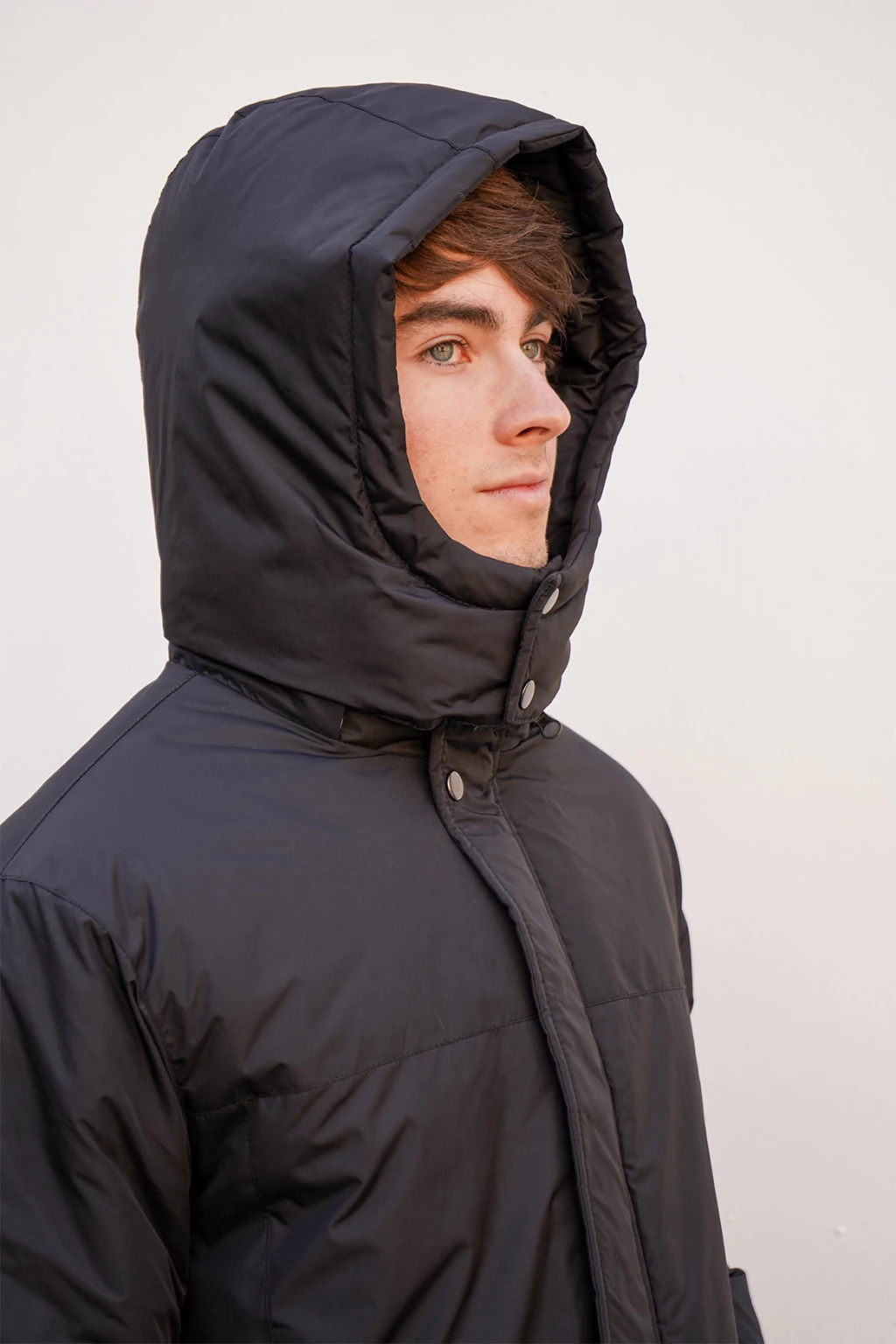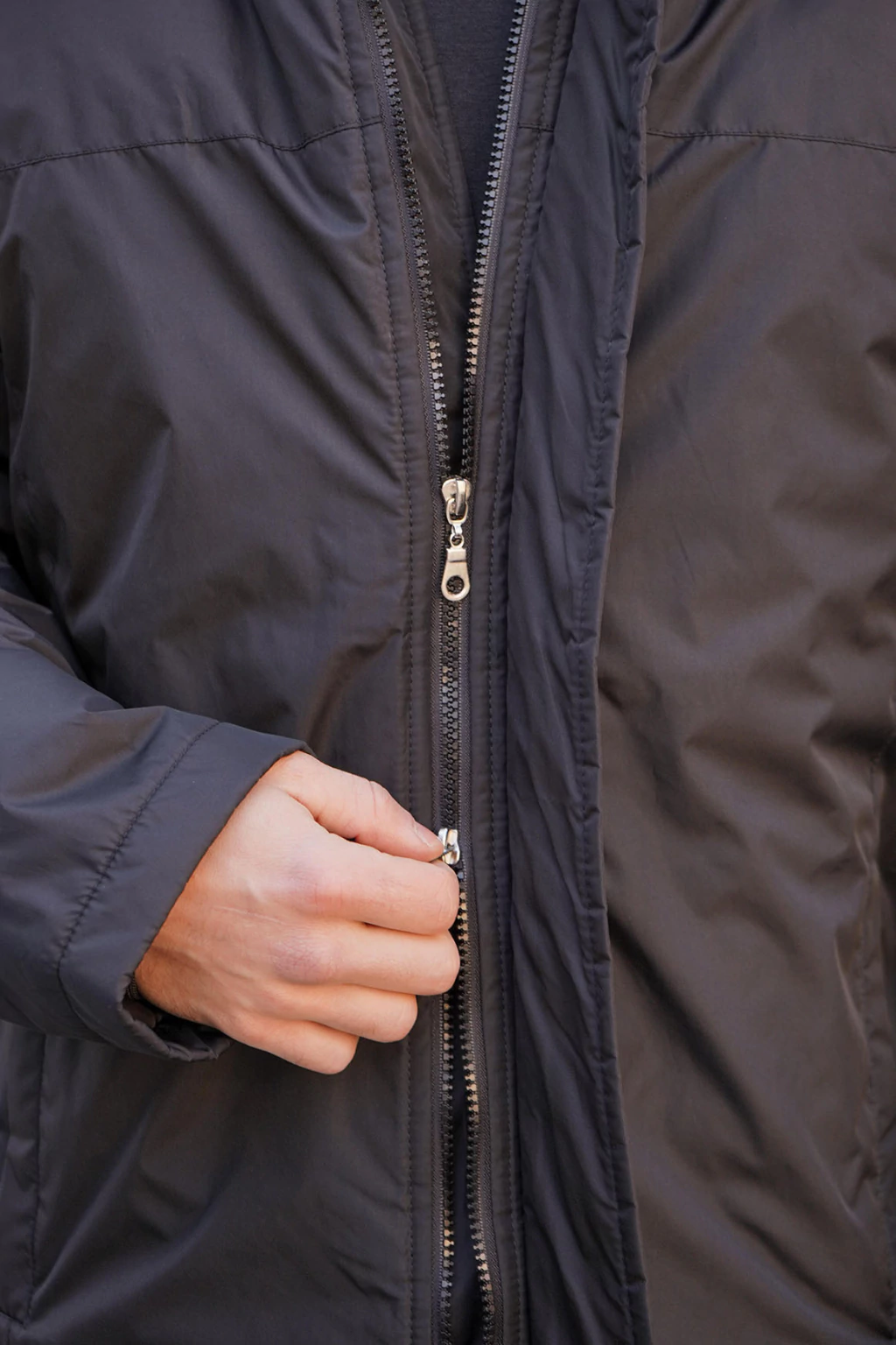 Esta campera esta hecha de tela impermeable, rellena con punzonada y forrada con sire.