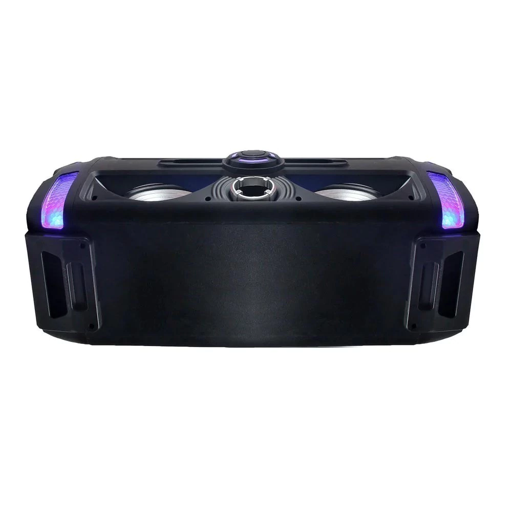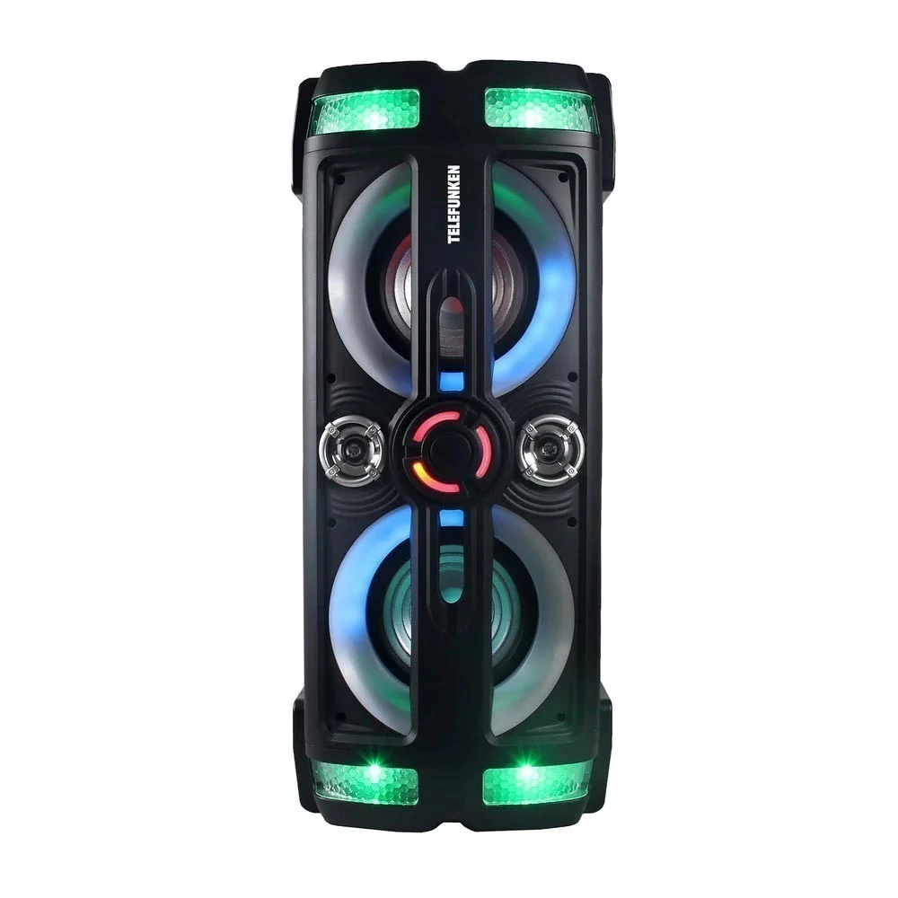 El NEON 25 de Telefunken es un parlante portátil con batería interna ideal para llegar a todas partes y armar tu propia fiesta. Posee puerto USB, SD y conectividad vía bluetooth para reproducir la música que más quieras desde un dispositivo móvil o Tablet, además cuenta con luces led audio rítmicas para complementar aún más tu fiesta. Tiene dos entradas de micrófono, un auxiliar e incluye un micrófono dinámico con cable y una correa para transportar, se carga mediante un USB.CARACTERÍSTICAS: Parlante portátil con correa.Incluye micrófono dinámico con cable incluido.Puerto USB y SD.Conectividad Bluetooth.Cuenta con función de grabación.Tiene una entrada auxiliar de 3,5 mm.Tiene 2 woofer de 5 pulgadas.Tiene 2 tweeter de 1,5 pulgadas.Luces led audio rítmicas.Batería interna incluida.Salida de carga USB.Ecualizador digital.Posee dos entradas de micrófono 1/4".Respuesta en frecuencia 60Hz – 20KHz Relación señal/ruido >80dB Sensibilidad 93dB Fuente de alimentación DC 9V 1A batería 2 x 7.4V 1200mAh Tiene una duración de 6 horas a un nivel medio.