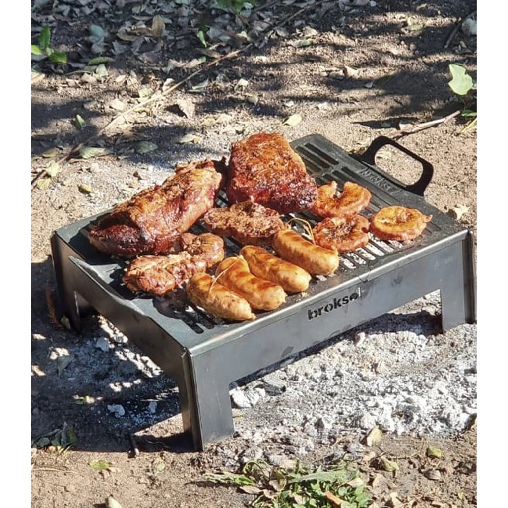 Código interno: 52821PARRILLA ENCASTRABLE BROKSOL 6005CARACTERÍSTICAS:- Marca: Broksol.- Modelo: 6005.- Parrilla encastrable portátil.- Cuerpo en chapa 2,5 mm.- Incluye 5 piezas de chapa negra reforzada que se encastran fácilmente entre sí, con un emparrillado con manijas muy resistente.- Ideal para un asado en familia o con amigos en tus viajes al aire libre o camping!- Incluye funda transportadora, para llevar a todos lados de forma muy cómoda.- Medidas: 37 x 44 x 15 cm.- Medidas plegada: 40 x 50 x 5 cm.- Peso: 4,7 kg.