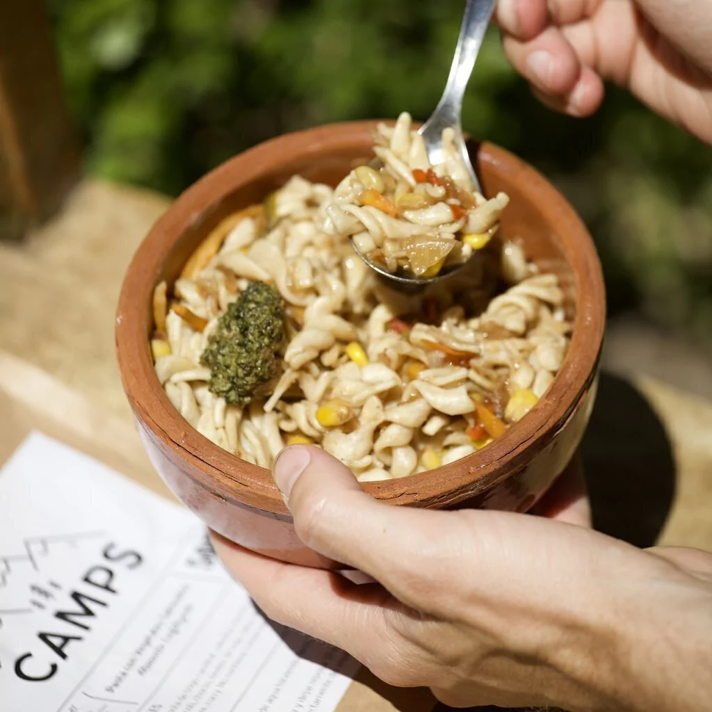 Fideos con vegetales salteados liofilizados x100 grs(equivalente a 400 grs hidratado).Livianos y simples de cargar: una porción de comida en sólo 100grs.Fáciles de preparar: ahorrá tiempo, sólo agregá 300 cm3 de agua hirviendo y listo!Ricos y nutritivos: 100% ingredientes naturales. Sin conservantes ni aditivos artificiales.Vida útil prolongada: 1 año de vida útil a temperatura ambiente. No necesita refrigeración.Seguros: Envasados en pack trilaminado de alta barrera. Resiste cualquier temperatura y condición climática.¿Cómo funciona?Abrís el envase cortando la ranura en el extremo superior.Agregás 300 cm3 de agua hirviendo dentro del envase y revolvés bien para hidratar todo el producto.Cerrás el ziploc y dejás reposar por 10 minutos.Abrís el ziploc y ya está listo para comer directo desde el envase o en un plato.¿Qué es la Liofilización?La liofilización es una técnica utilizada para eliminar el agua de los alimentos. A diferencia de la deshidratación tradicional por tratamiento térmico, la liofilización conserva todos los nutrientes de los alimentos frescos ya que se realiza a bajas temperaturas y baja presión eliminando el agua a partir del proceso de sublimación que evita el arrastre de nutrientes que sucede en los metodos de deshidratación tradicionales.Ingredientes: Fideos de sémola de trigo candeal, Cebolla, Morrón rojo, Morrón verde, Zanahoria, Brócoli, Choclo, Bortes de soja, Salsa de soja, Maicena, Aceite de sésamo, Jengibre, Curry.Información nutricional: Calorías 507 Kcal, Carbohidratos 26,3 g, Proteínas 4,7 g, Grasas totales 2,3 g, Grasas saturadas 0,3 g, Grasas trans 0,0 g, Fibra 2,9 g, Sodio 143 mg.