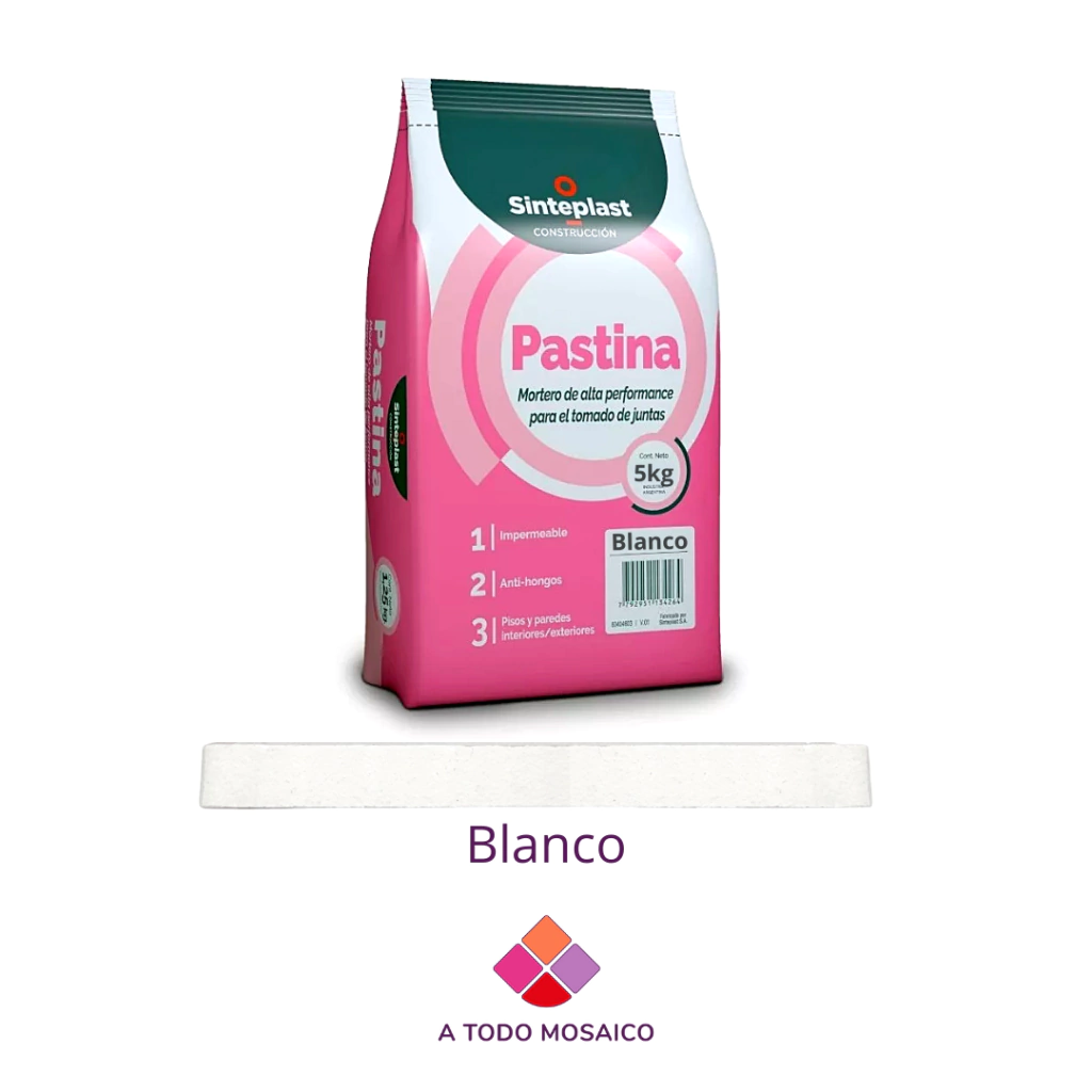 La pastina es un mortero en polvo basado en cemento portland, áridos de granulometría seleccionada y aditivos. Como consecuencia de esta formulación se logra un mortero con una capacidad de penetración y plasticidad excelentes con bajas relaciones de agua / cemento. Su rango de aplicación permite utilizarla en tomado de juntas de 1 a 15 mm (superior a la línea classic).Características:Uso Interior y exteriorImpermeableAnti-hongo.Este producto por poseer aditivos fungicidas, otorga un plus protector altamente eficaz contra hongos reduciendo el deterioro estético a largo plazo.Fácil mezclado y extensión