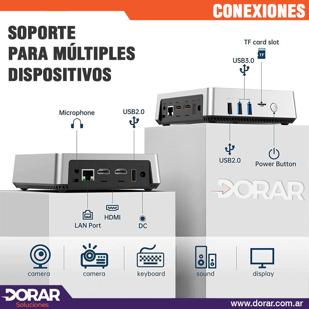 - 8G DDR4 RAM+ 128G SSD ROM Storage: Instalada con 8G DDR4 RAM y 128G M.2 SSD, esta minicomputadora tiene suficiente espacio de almacenamiento de memoria para funcionar más rápido y puede guardar más archivos o películas. Opciones para ampliar el almacenamiento: (1) agregar un SSD M.2 2280 (hasta 2 TB); (2)Agregue un HDD/SSD externo mediante una ranura USB 3.0. (3) Agregue una tarjeta TF de hasta 128 GB