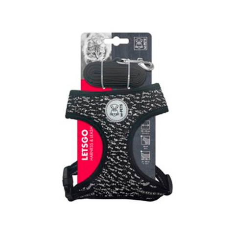 El arnés para gatos está fabricado en poliéster resistente, totalmente ajustable. Cuello regulable de 26 cm. Pecho regulable de 33-48 cm. Correa de 90-170 cm
