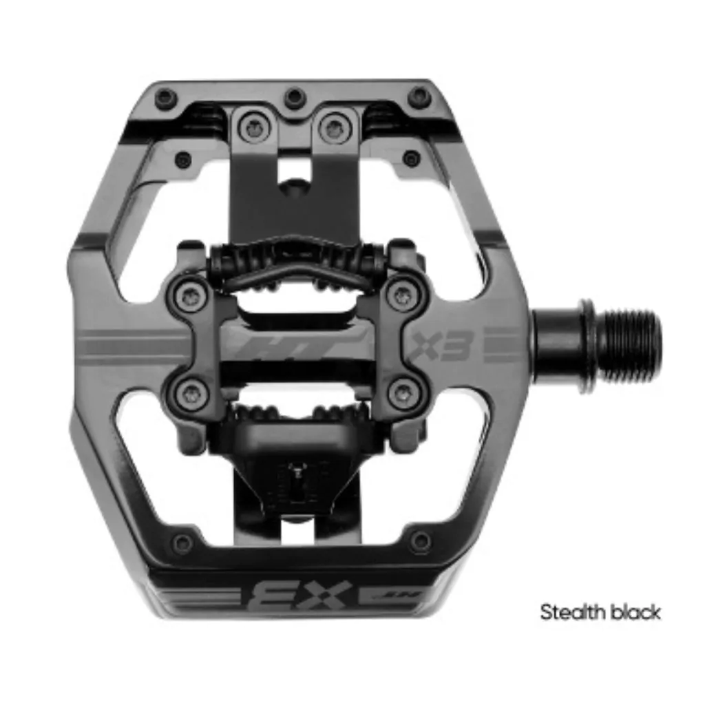 Pedales Automaticos HT X3 DH RaceLos pedales HT X3 son los usados por los corredores de DH Aaron Gwin, Amaury Pierron, Remi ThirionLos pedales HT X3 están diseñados para usarlo en descenso, con una plataforma base más grande para soportar una mayor estabilidad en los terrenos más difíciles. El cuerpo está hecho de aluminio extruido optimizado por CNC para una adecuada relación resistencia-peso. Utilizando el exclusivo sistema sin clips patentado de HT con ajustes de tensión dual ajustables para una sujeción segura del pie en cualquier condición. Resistente al barro, fácil de enganchar y desenganchar.CaracteristicasPeso del pedal (par) 476 g (con placas frontales)Peso de la cala (par) 64 gTamaño 85 x 90 x 14 mmMaterial del cuerpo extruido de aluminio / mecanizado CNCRodamientos del pedal: rodamientos sellados / IGUS casquillos Sistema de calas: X1 / X1F (sistema exclusivo HT)Calas CompatiblesHt X1Ht X1EHT X1FHT X2HTHT, la marca de pedales de alta gama se creó en 2005 para satisfacer las crecientes necesidades del mercado. Este fue un hito importante para la empresa, con una variedad de nuevos diseños para ingresar al mercado utilizando tecnologia de avanzada. En la actualidad, HT se concentra en desarrollar los mejores componentes para bicicletas para ayudar a los mejores atletas a superar sus límites y a los aficionados a disfrutar de la conducción a su máximo potencial
