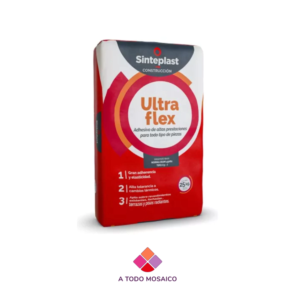 Mezcla adhesiva de altas prestaciones, con propiedades de anclaje físico y químico que le permite adaptarse a distintos tipos de soportes y piezas de baja, media y alta absorción.Características:Alta tolerancia térmica (permite su uso en el exterior, ya que soporta la variación de temperatura verano-invierno y loza radiante en interior)Excelente trabajabilidad.Perfecta adherencia a todos los materiales.Tiempo abierto extendido.Consumo:Según el tamaño de la pieza:Piezas de hasta 15 x 15 cm: 3 kg/m2 (llana de 6 x 6 mm)Piezas de hasta 20 x 20 cm: 4 kg/m2 (llana de 8 x 8 mm)Piezas de hasta 30 x 30 cm: 5 kg/m2 (llana de 10 x 10 mm)Piezas de más de 30 x 30 cm: 6 kg/m2 (llana de 12 x 12 mm)