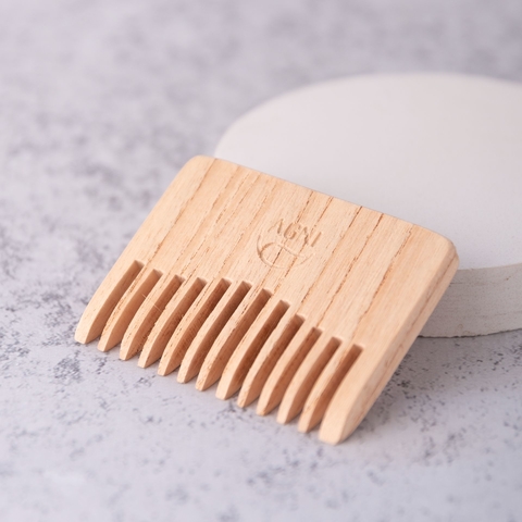 Peine BarbaPeine natural fabricado con madera de reforestación. Sin tratamientos químicos ni ceras animales.No es recomendable su contacto directo con el aguaBeneficios:son anti-frizzno quiebran la fibra capilar, razón por la que ayudan a detener la caída del cabelloal ser completamente naturales colaboran con la mejor distribución de la oleosidad desde el cuero cabelludo hasta las puntas.Medidas: 8 cm x 6 cmNaturales, ecológicos, biodegradable. Apto vegano.