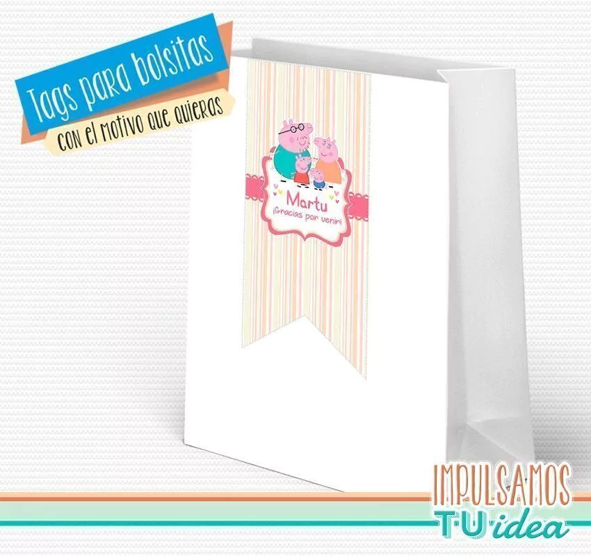 Peppa, tag bolsita peppa con familia para imprimir