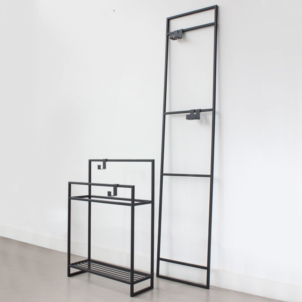 El perchero Giry compuesto por un estante zapatero y 2 perchas móviles que podés organizar de la manera que vos quieras.Medidas: 60 x 20 x 80 (h) cmMateriales: La estructura es de hierro, soldado con uniones premium y pintado a horno con acabado mate.Origen: Nacional.Este artículo se puede personalizar en blanco y negro.Plazo de fabricacion: 45 a 60 dias.Consultar disponibilidad para entrega inmediata.La imagen del producto es una toma real del mismo perteneciente a un lote determinado. Podrían existir leve variaciones entre partidas. Recomendamos consultar al personal de atención al cliente por disponibilidad de muestras del producto para ver en nuestro local.