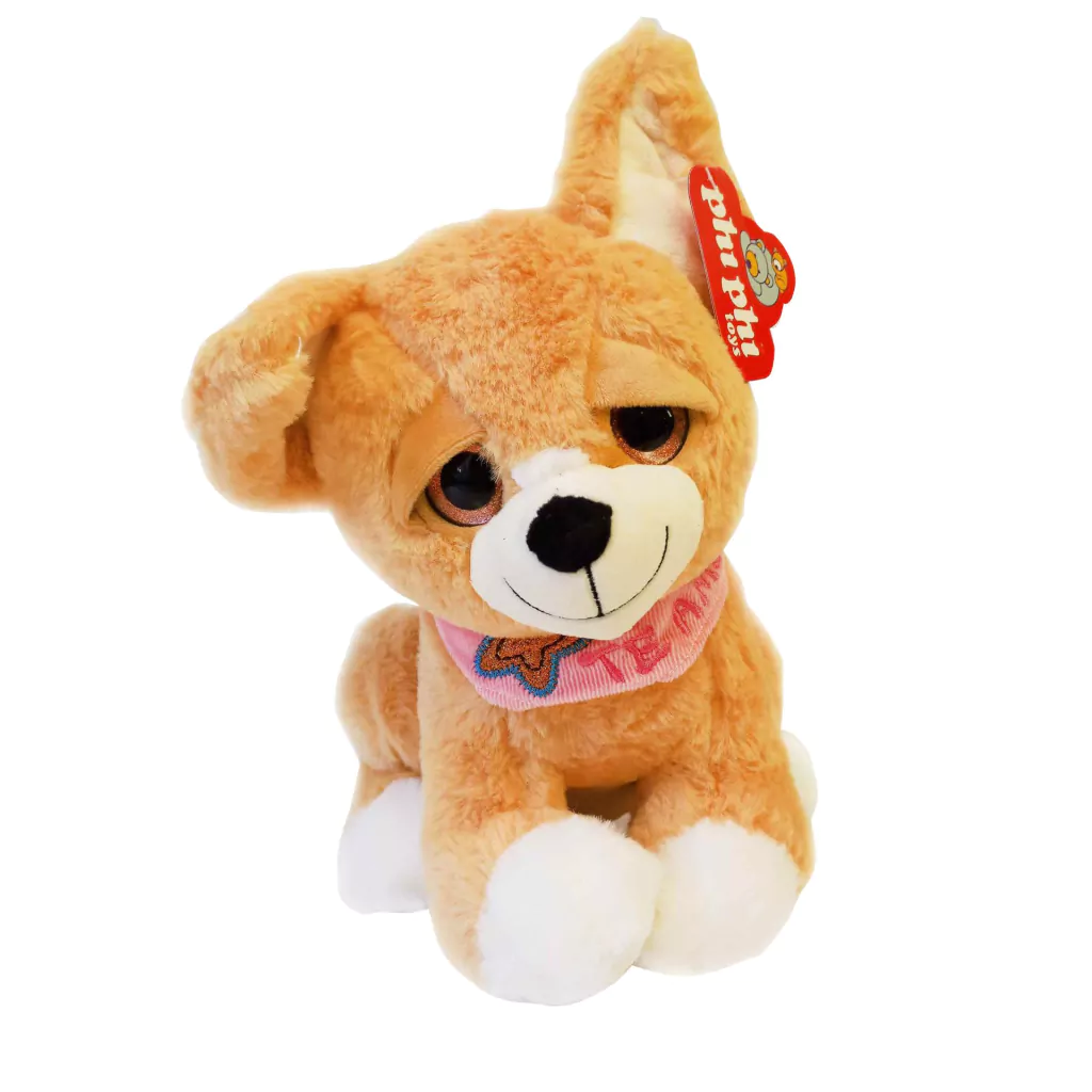 Peluche Perro enamorado y sentado, con pañuelo de tela bordado "Te amo" en el cuello, material 100% reciclado y pelo súper suave. Construcción de alta calidad.Material: Peluche súper suave. 100% hipoalergénico.No utiliza pilas.Color: perro Beige con pañuelo rosa.Medidas totales: 30 cm de (alto) x 18 cm (ancho) x 26 cm (prof.)