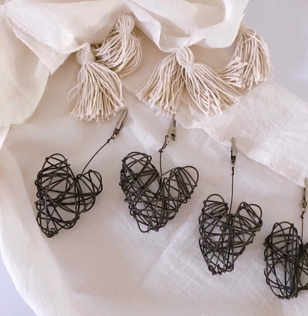 Te presento set de 4 corazones de alambre para colocar en la punteras de los manteles y poner las mesas más lindas y además evitas q el mantel se vuele! Hechos a mano y con Amor!
