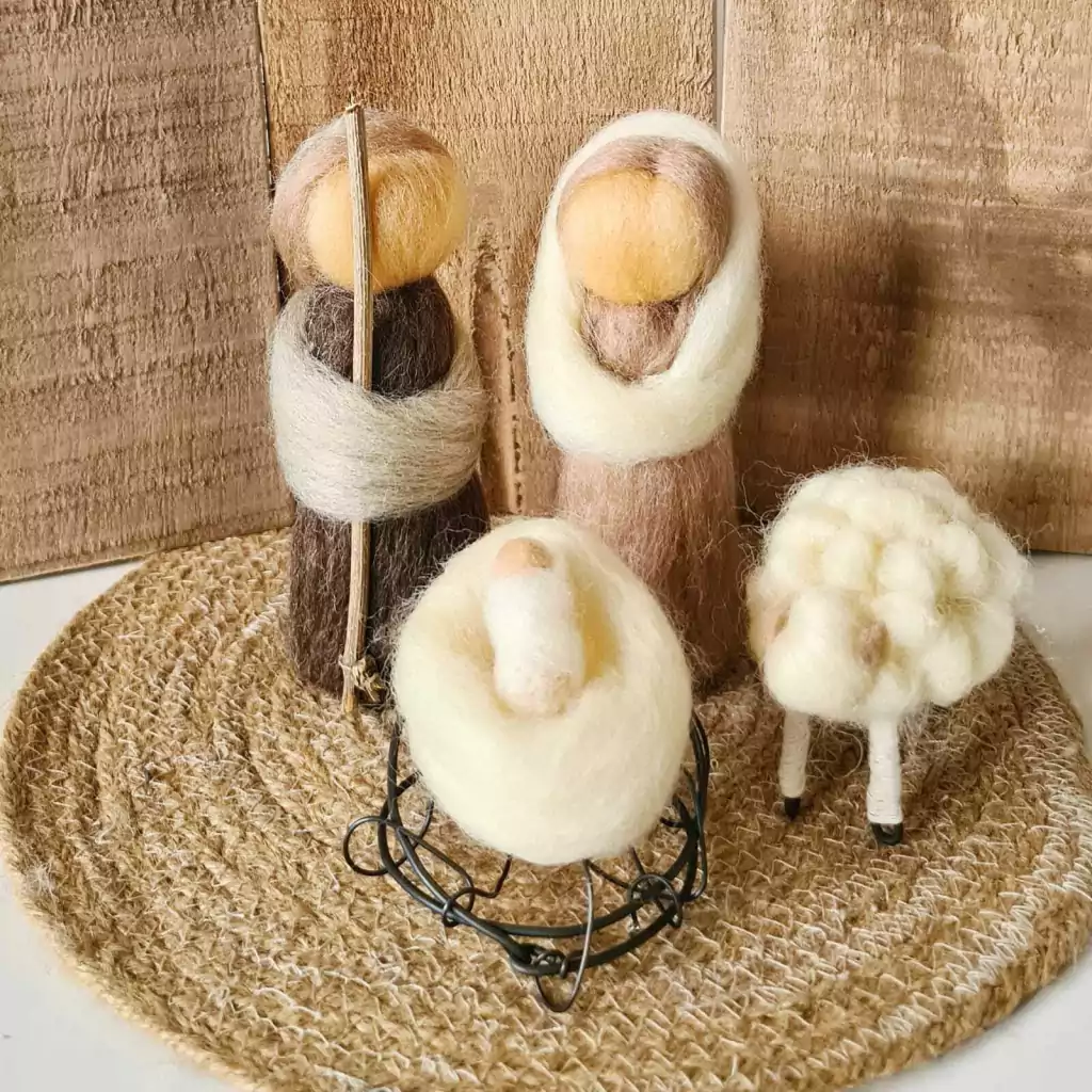 Pesebre de vellon de lana, colores tierra . Incluye Maria, Jose, el niño Jesús con cuna y una oveja. Medidas de las figuras principales 11 cm, tamaño chico y 18 cm, tamaño mediano.Triptico de madera Reciclada con estrella 28 x26 cm. Hecho artesanalmente Listo para armar y tener en estas fiestas !