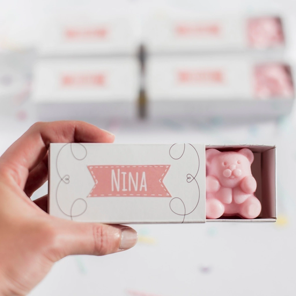 2 ositos de jabón rosaSouvenirs Personalizados para Baby Showers, nacimientos, bautismos, primer añito, cumpleaños infantiles y ocasiones especiales.Jabones de tocador aptos para uso personal y respaldados por el A.N.M.A.T:No se achican a largo plazoNo pierden el color originalFragancia perdurable en el tiempoMedidas del osito: 4 x 3,5 x 2 (cm)Peso del osito: 30 gr.Compra mínima 8 cajitasAl finalizar su compra contactese via e-mail a[email protected]para personalizar tu producto.