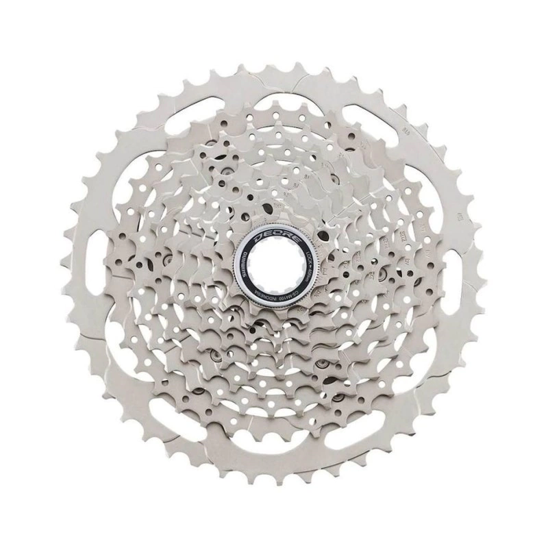 - Los cassettes de DEORE están disponibles en acabados 11-42T Y 11-46T para menor salto de piñones,Las diez coronas de acero ofrecen un resultado óptimo en cuestión de durabilidad, peso y estilo de conducción.