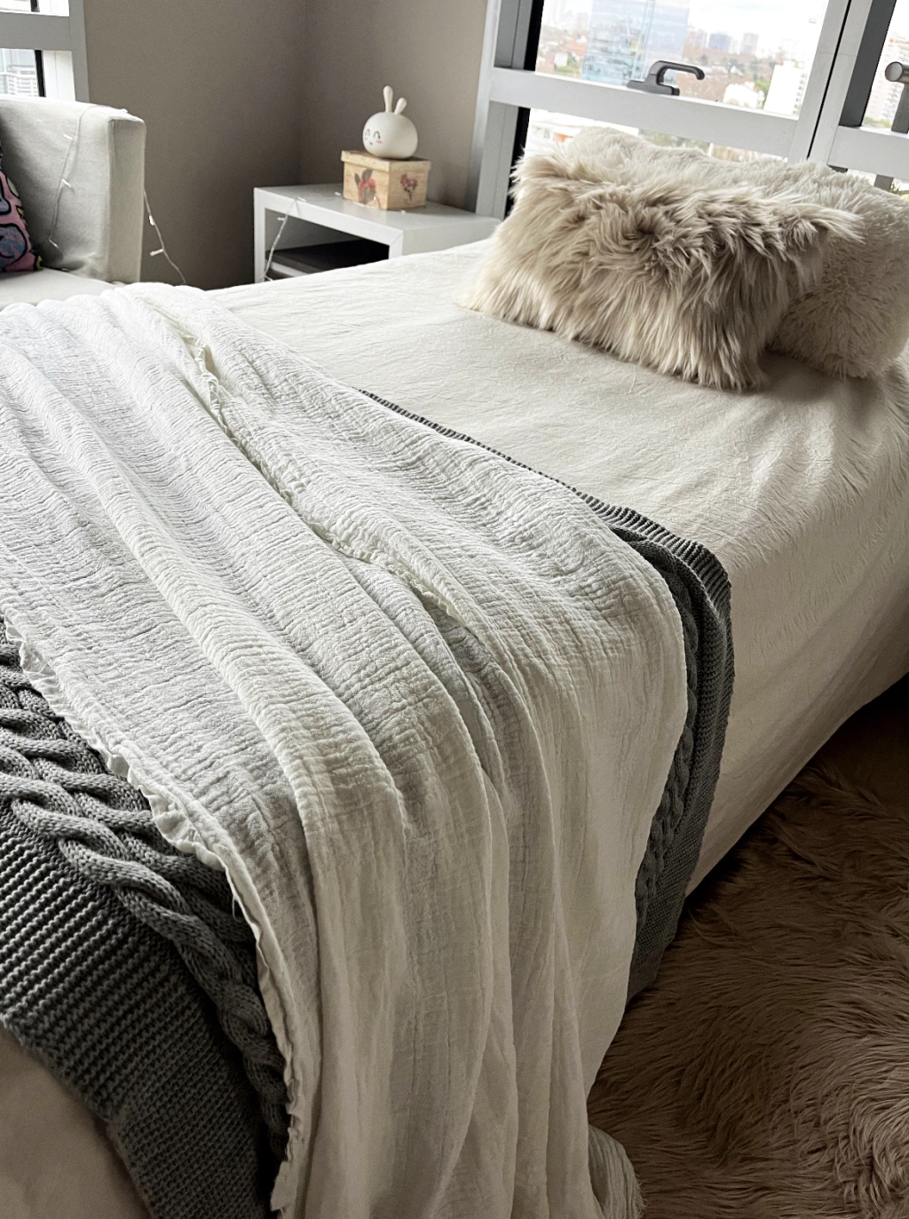 Gasa marroquí. En color blanco con costados desflecados.Medidas: 1,90x1m