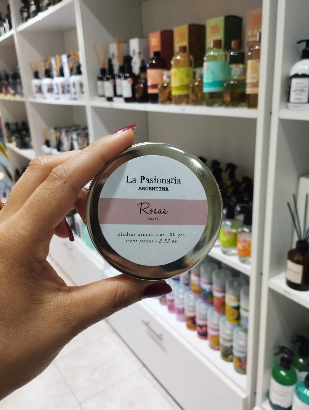 Piedras aromáticas, muy perfumadas, impregnadas de esencias exclusivas. Perfuman cajones, autos, bolsos, ropa, calzados, cuartos de baños y demás espacios con mucha intensidad y por mucho tiempo.Disponible en los siguientes aromas:- FLORES BLANCAS- ROSAS- LAVANDA