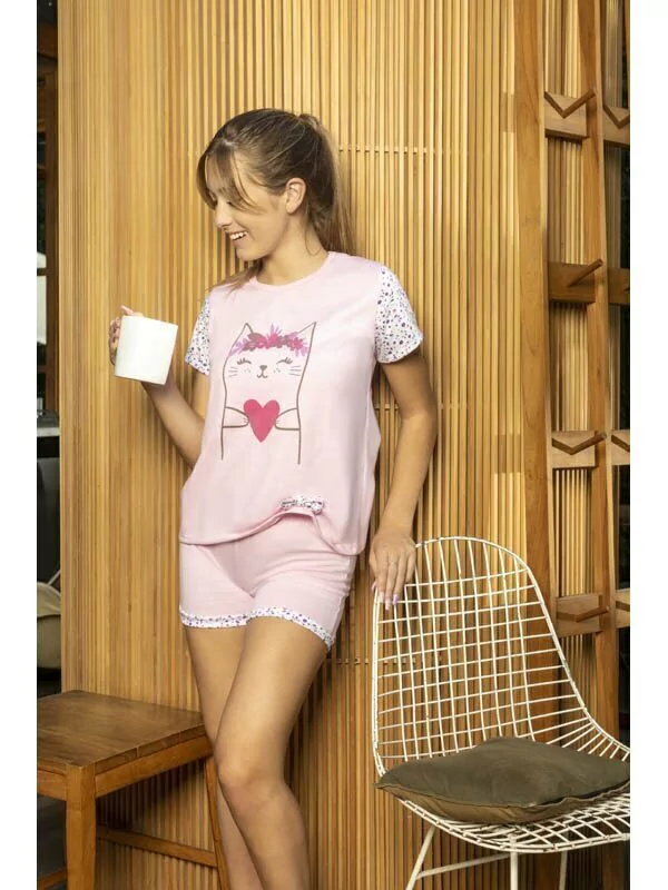Pijama de algodón con estampa y short de algodón liso con estampado Natubel