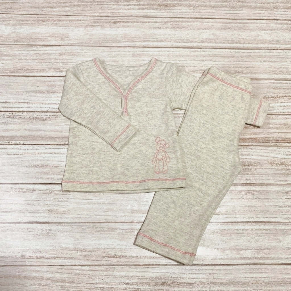 Pijama de Algodón gris Melange , con detalles y Bordado en Rosa .