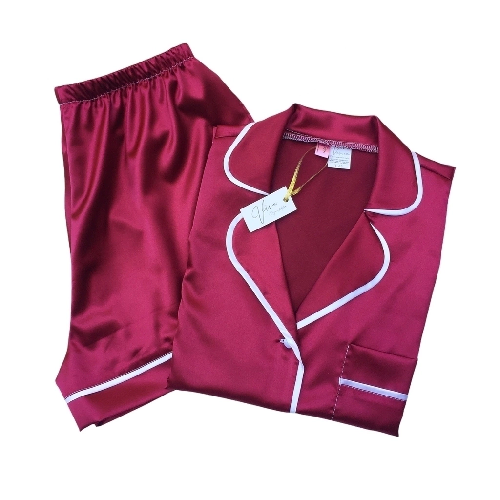 Pijama de dos cuerpos: camisa manga corta y short, color bordeaux.
