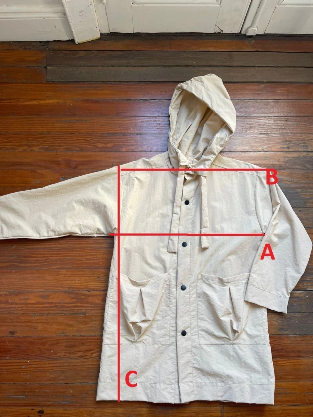 T 2: A: sisa 63cm - B ancho hombros 57cm - C largo 85cm (talle amplio)