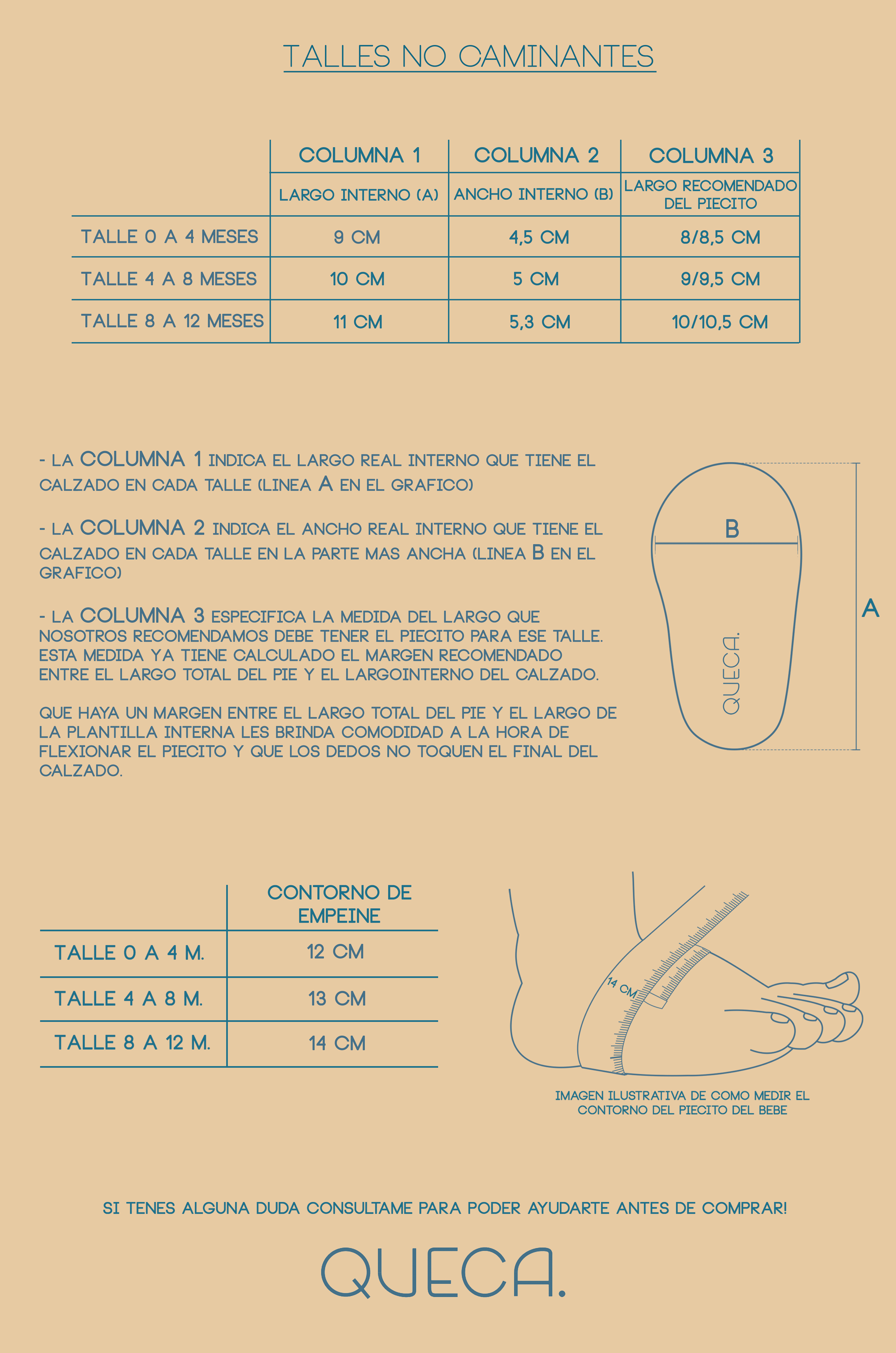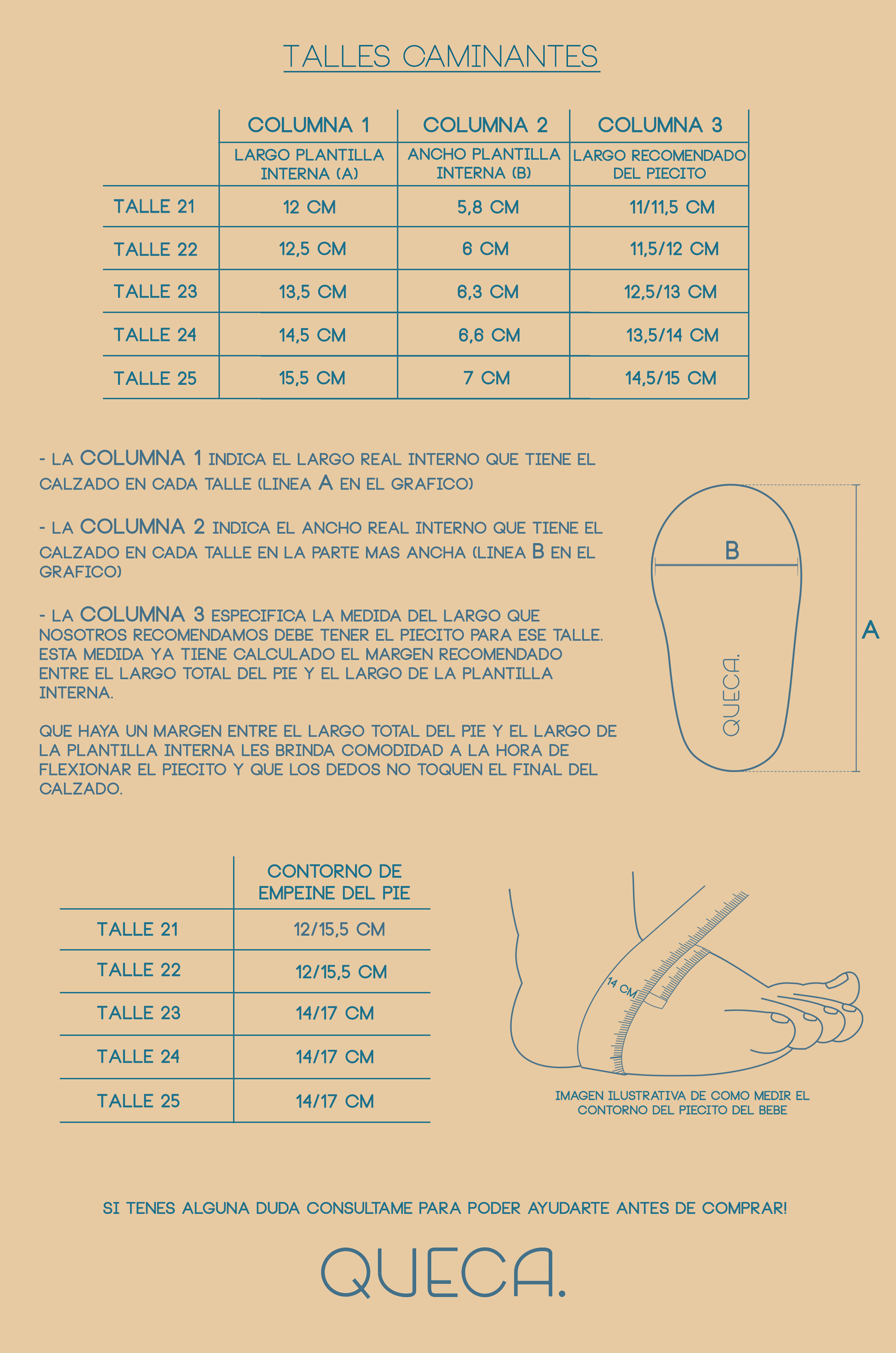 En esta sección podés ver las tablas de talles y medidas de nuestros calzados. SIEMPRE RECOMENDAMOS MEDIR EL PIECITO Y COMPARARLO CON LA TABLA DE TALLES PARA ASEGURARSE ELEGIR EL TALLE CORRECTO. Cualquier duda podés escribirnos y te ayudamos!