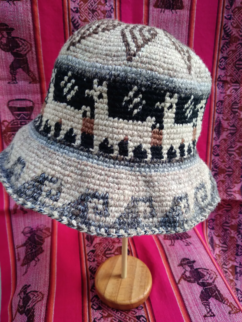 Gorros pilusosModelo: choscoMaterial: lana de ovejaDibujos andinos:Color de fondo: BeigeFranja en Crudo con lineas en Negro y beigeDibujo superior : Estrella en MarronNo lavar en lavarropas, no centrifugarColor: code # 10