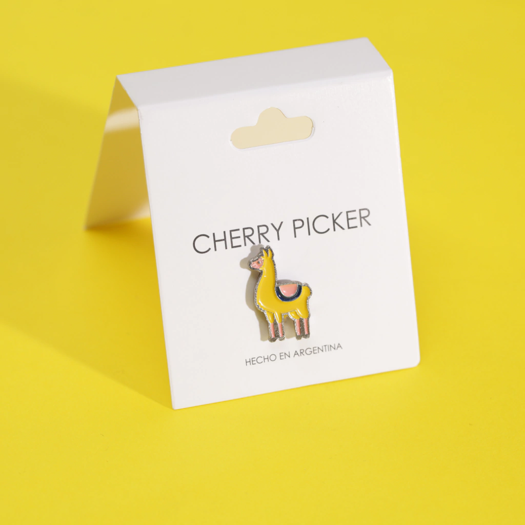 PIN LLAMAS AMARILO CON AZUL Y ROSA EN BAÑO PLATEADO