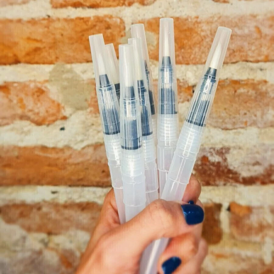 Pinceles de agua. Se pueden cargar con agua sola para lograr un efecto acuarela o con agua + pigmento, oxido o engobe para transformarlo en una fibra.