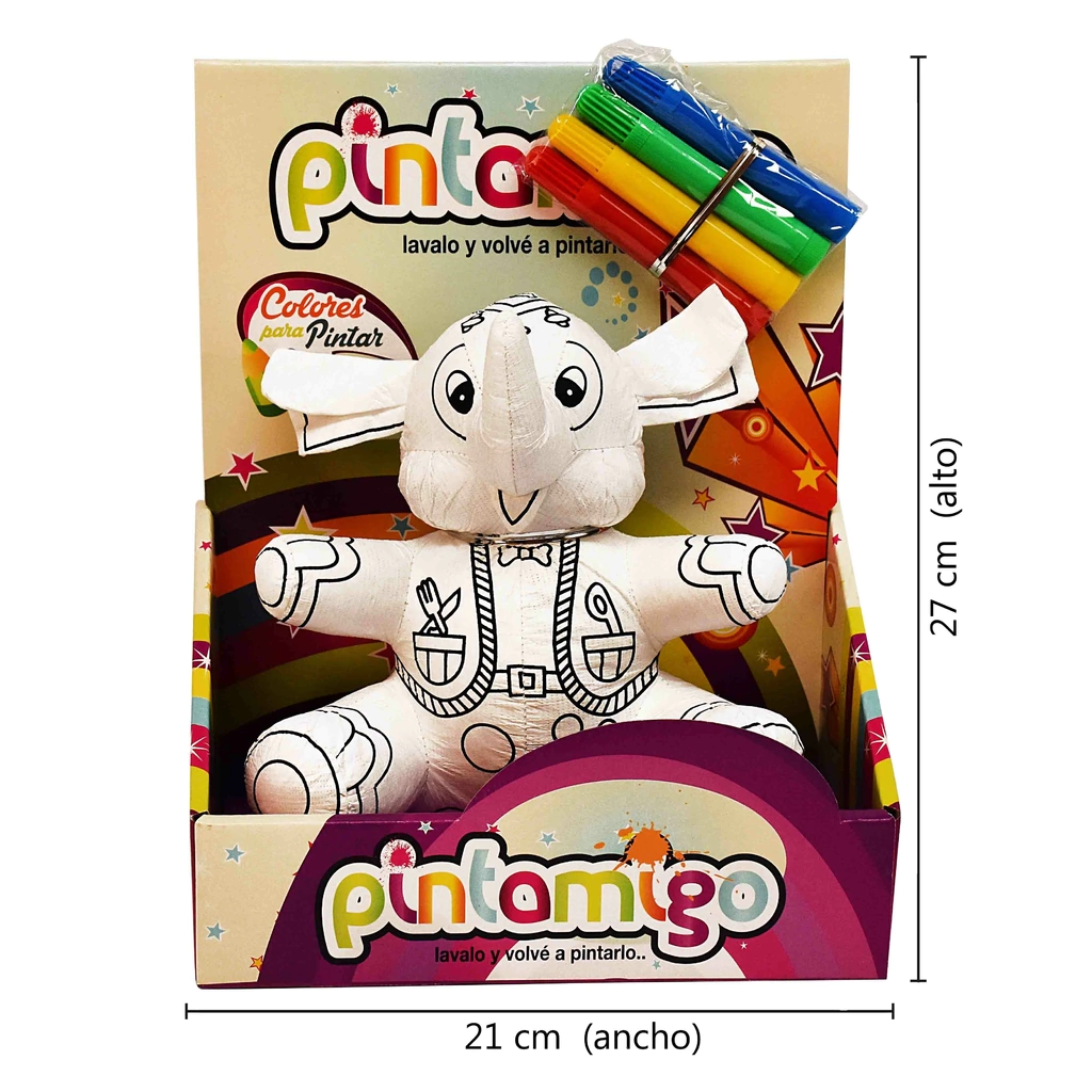 Pintamigo Peluches para colorear. Lavables: se lavan y se vuelven a pintar. Incluye 4 marcadores de colores para pintarlos. No tóxico, totalmente apto para los niños. Coleccionables.