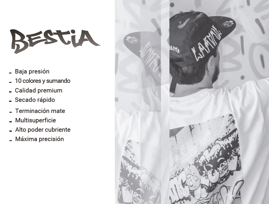 El aerosol para graffitis mate Bestia es un producto diseñado para los artistas urbanos que desean crear obras de arte en superficies porosas como paredes, muros y concreto. Este aerosol proporciona un acabado mate que permite que la obra de arte se destaque sin reflejos ni brillos. Además, su fórmula de secado rápido y resistente a la intemperie lo hace ideal para su uso en exteriores. Bestia para graffitis mate está disponible en una paleta de 10 colores vibrantes y duraderos.