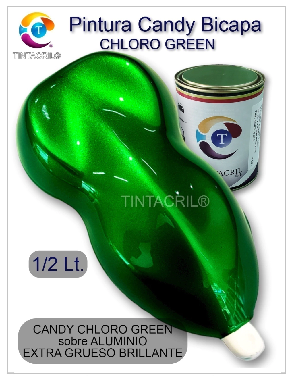Los Colores Candy Bicapa TINTACRIL® se fabrican con los tintes más intensos y de mejor calidad disponibles para proporcionar colores claros y nítidos como ningún otro. Los Colores Candy Bicapa son limpios, transparentes, brillantes, vibrantes y estables a los rayos UV. ESTÁN ESPECIALMENTE FORMULADOS PARA SU APLICACIÓN SOBRE PINTURAS COLOR ALUMINIO, COLORES PERLADOS, COLORES CLAROS, MADERAS, ETC., Y SOBRE TODO, LO QUE SU CREATIVIDAD LE SGUIERA YA QUE SU LIMPIA TRANSPARENCIA, SIEMPRE DEJARÁ VER LA PINTURA BASE Ó EL SUSTRATO DONDE SE APLICAN. Con su imaginación, podrá lograr opciones y efectos de color ilimitados, mezclándolos entre sí desde un 5% a un 50%. Nota: Todos los Colores Candy Bicapa están especialmente formulados para ser aplicados entre 2 – 3 manos para reproducir el tono que se muestra en la galería de imágenes de nuestra web
