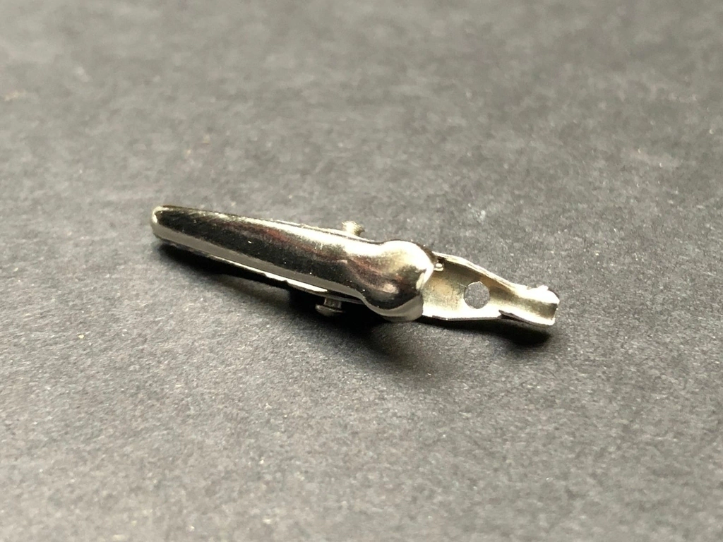 Fabricado en acero niquelado, cuenta con dientes internos que aseguran un agarre firme sin dañar los papeles o etiquetas. Su tamaño compacto lo hace perfecto para sostener tarjetas, nombres o recordatorios.