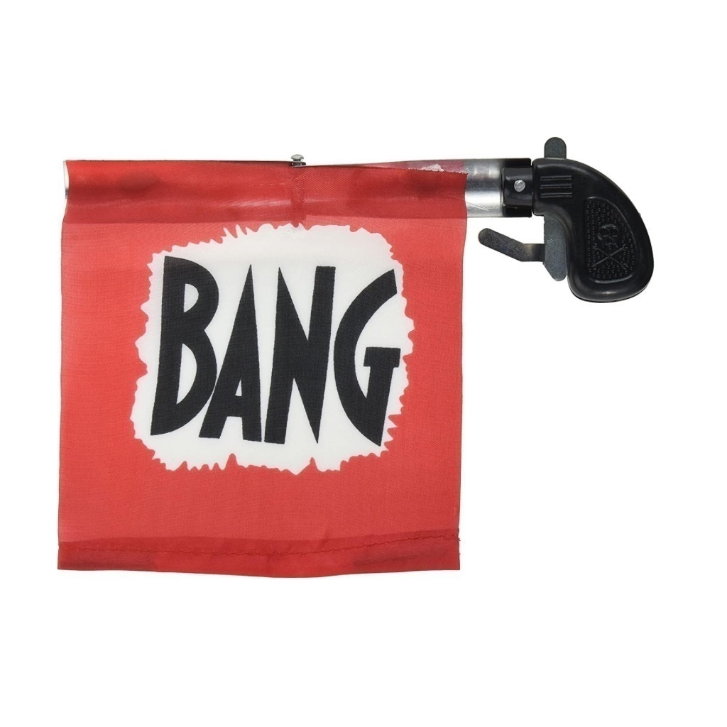 Pistola de plastico. Gatillas y sale la bandera de bang.