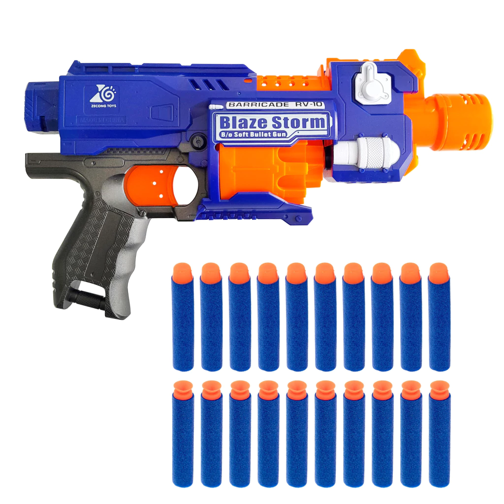 Pistola LANZA DARDOS, con lanzador accionado por aire, explosión rápida. Bombeo y acción. Incluye 20 dardos de goma espuma: 10 con sopapa y 10 simples. Dispara a más de 5 metros de distancia.La pistola posee espacio para 10 dardos, 1 que dispara y 9 más para dardos de repuesto.Material: Plástico y dardos suaves de goma espuma.Para niños mayores de 6 años. Permite el desarrollo de la interacción entre los niños, el jugar con armas representa una batalla retórica, desarrollando el espíritu de aventura y hazaña en el niño, además del sentido de victoria y derrota.En Caja. La pistola utiliza 3 pilas “AA”.Medidas de la Caja: 34 cm (largo) x 21 cm (alto)Medidas de la pistola: 34 cm (largo) x 18 cm (alto) x 7 cm (ancho)Medida de los dardos: 7 cm (largo)