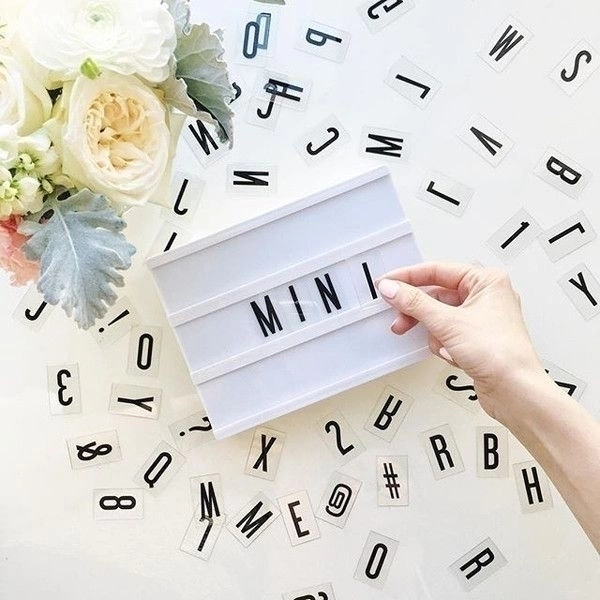 Mini Pizarra luminosa tipo cinema, su tamaño es A6.