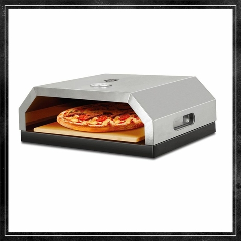 Para utilizar sobre Parrillas a Gas y a Carbón. Tamaño: 35 x 40 x 16.5cm. Tapa: SS#430 0.6mm. Bandeja de Acero: Terminación Esmaltada. Piedra para Pizza. Termómetro.