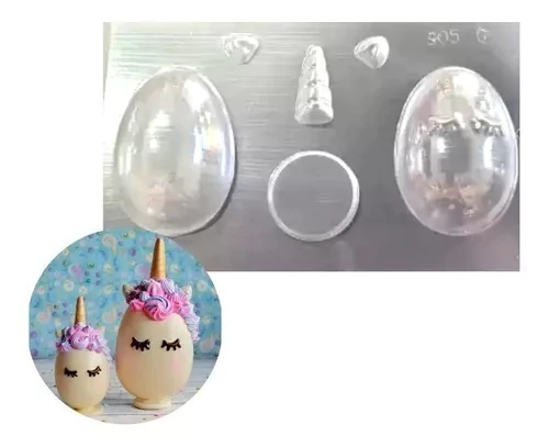 Producto : Placa Molde Huevo Pascua UnicornioCantidad : 1 unidadMaterial : acetatoMedida : placa 26 x 15 cmhuevo 10 cm largo x 6.5 cm ancho
