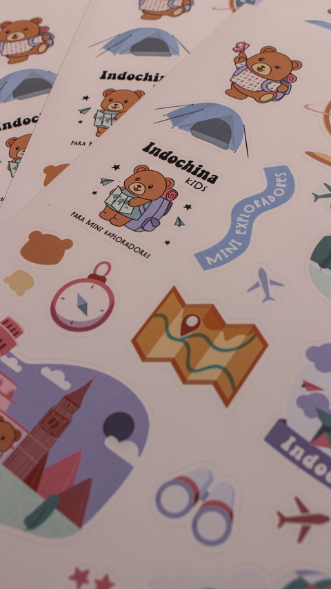 Plancha de Stickers IndoKIDS, para mini aventureroscon los diseños de la nueva colección pensada para los minis viajeros!Están hechos en material opp blanco. Medida A5 (15cmx21cm) .¡SON RESISTENTES AL AGUA! para pegarlos en todos lados y siempre llevar tu #IndochinaStyle con vos!Los stickers vienen troquelados :)