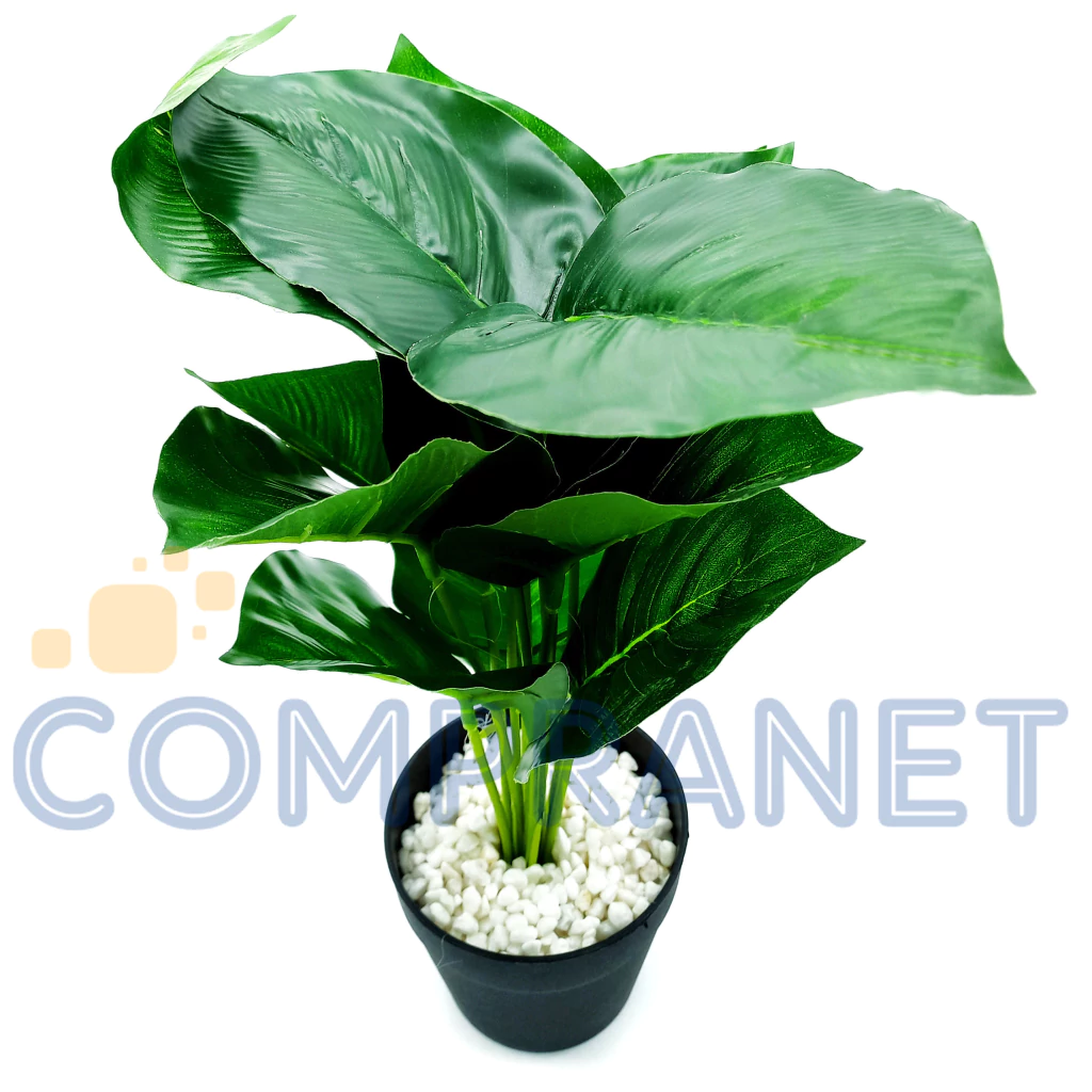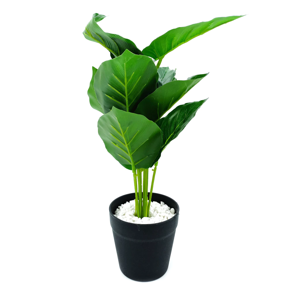 Planta Artificial Mediana, con maceta de plástico negra y piedras blancas en la base, super decorativo para tu hogar.Dale un toque natural y cálido a tu casa o la oficina, sin preocupaciones. No requiere ningún tipo de mantenimiento, se pueden limpiar las hojas con un paño húmedo.Disponible en 2 modelos diferentes.Modelo 1: Tipo montera.Modelo 2: Oreja de ElefanteAmbas súper decorativas y llamativas para tu casa.Medidas de las plantas: 36 cm (alto) x 11 cm (diámetro de la maceta)
