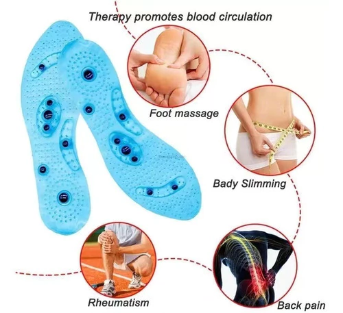 Plantillas De Magnetoterapia Ideales para masajes de REFLEXOLOGIA en los pies Estas plantillas de magnetoterapia aplican presión en determinados puntos de los pies para tratar dolores agudos y crónicos. Medida: 26 Cm Alto x 9 Cm Largo