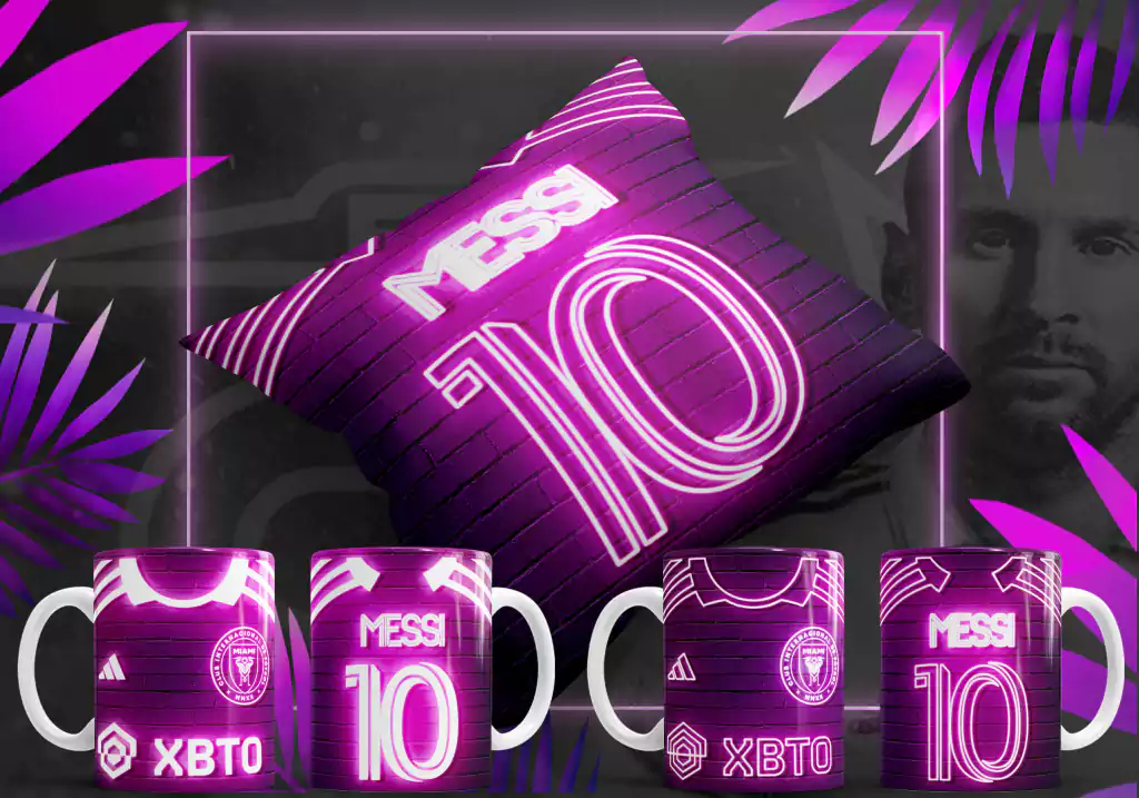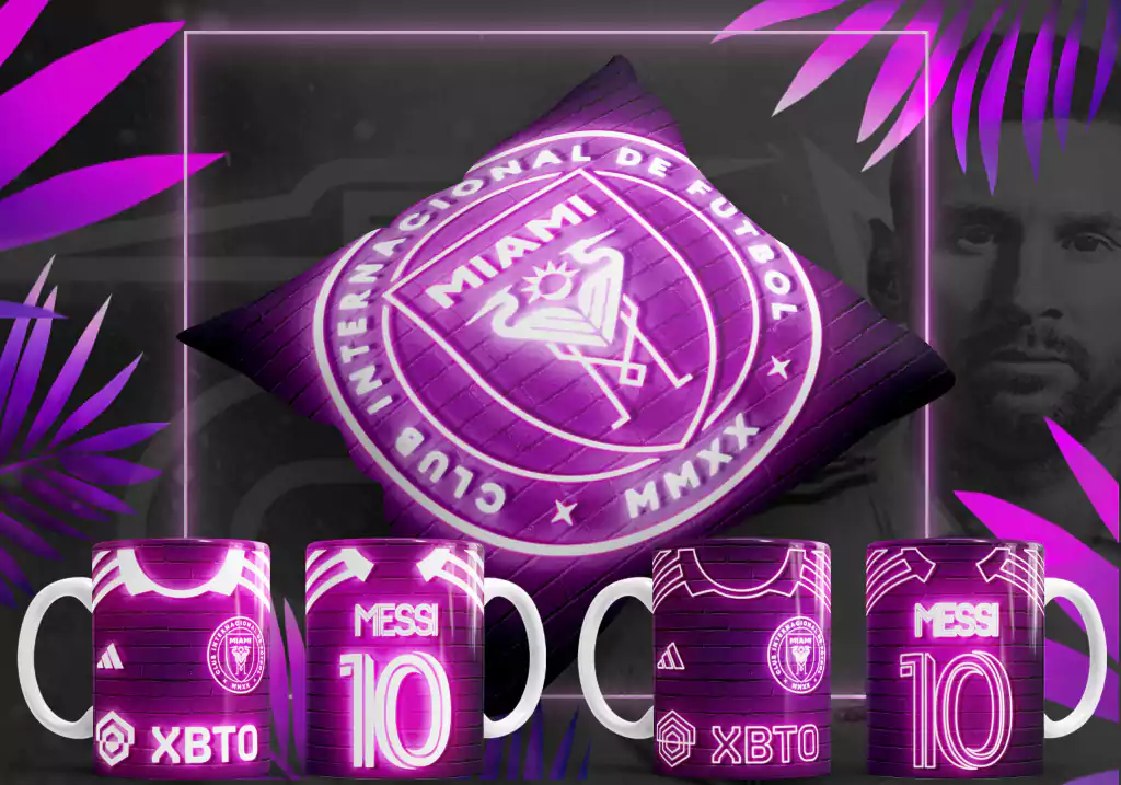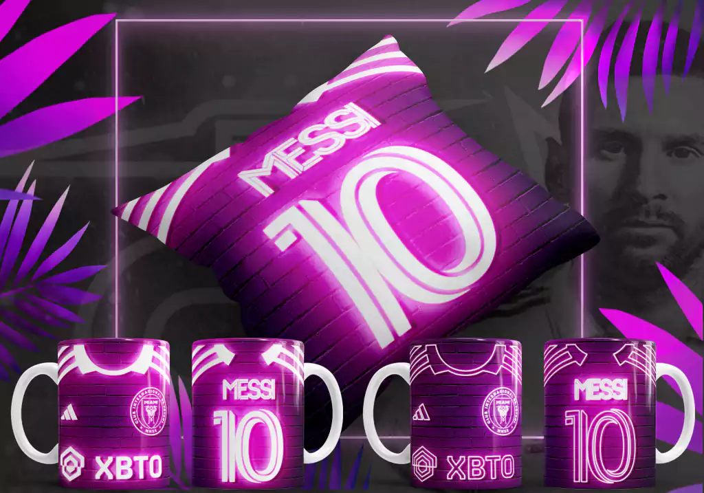💥8 Diseños Tazas (2) y Almohadones (6) Leonel Messi Inter Miami Neon💥