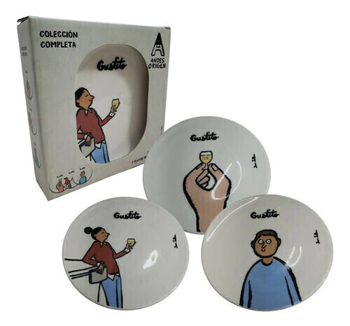 3 platos cerámica ilustrados Andes Origen