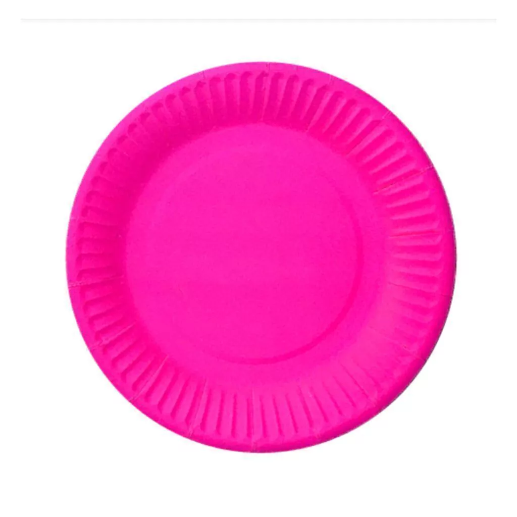 Platos de polipapel en color fucsia fluo x8 unidades.