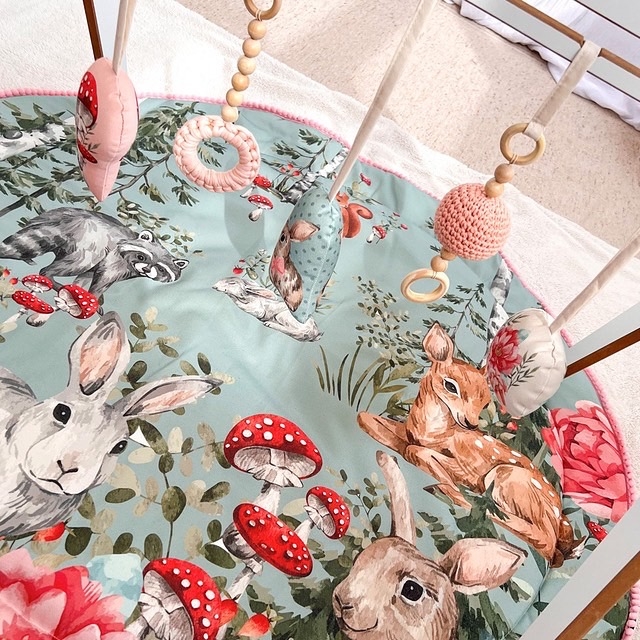 Nuestro Play Mat Savage fué diseñado para fomentar el movimiento libre de tu bebé desde sus primeros días.Ideal para fomentar y estimular a tu bebé mientras juega.Medidas:Playmat Cuento para Emma mide 105 cm y es súper acolchonado, relleno con guata, ideal para apoyar al bebé directamente sobre el.Realizado en gabardina estampada, y flecos color crudo alrededor.Nuestros productos están hechos con materiales nobles, amigables con el medio ambiente y libres de plástico.( NO INCLUYE GIMNASIO DE MADERA)