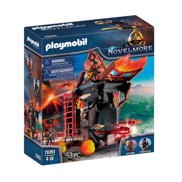 ARIETE DE FUEGO DE LOS BANDIDOS DE BURNHAM70393Para capturar el castillo de Novelmore, los Burnham Raiders han desarrollado un arma particularmente sofisticada: el Fire Ram.El peligroso ariete móvil con sus brillantes ruedas de fuego está controlado por el feroz Ashthorn. A primera vista, el casco de Ashthorn, con su enorme ornamentación espinosa, puede parecer un poco poco práctico, pero Ashthorn es un luchador notorio que asusta a todos los atacantes. Junto con el astuto espía Tindercloak, Ashthorn siempre está tratando de burlar a los Caballeros de Novelmore.Usan su ardiente ariete de fuego móvil con pared plegable para conquistar los castillos enemigos. Luego, el astuto Tindercloak se infiltra en el castillo y descubre todos los secretos. Caballeros de Novelmore: ¡prepárate! El juego incluye los Burnham Raiders Ashthorn y Tindercloak The Infiltrator, ariete, escudos, antorchas, lanzas, espadas y muchos otros accesorios.