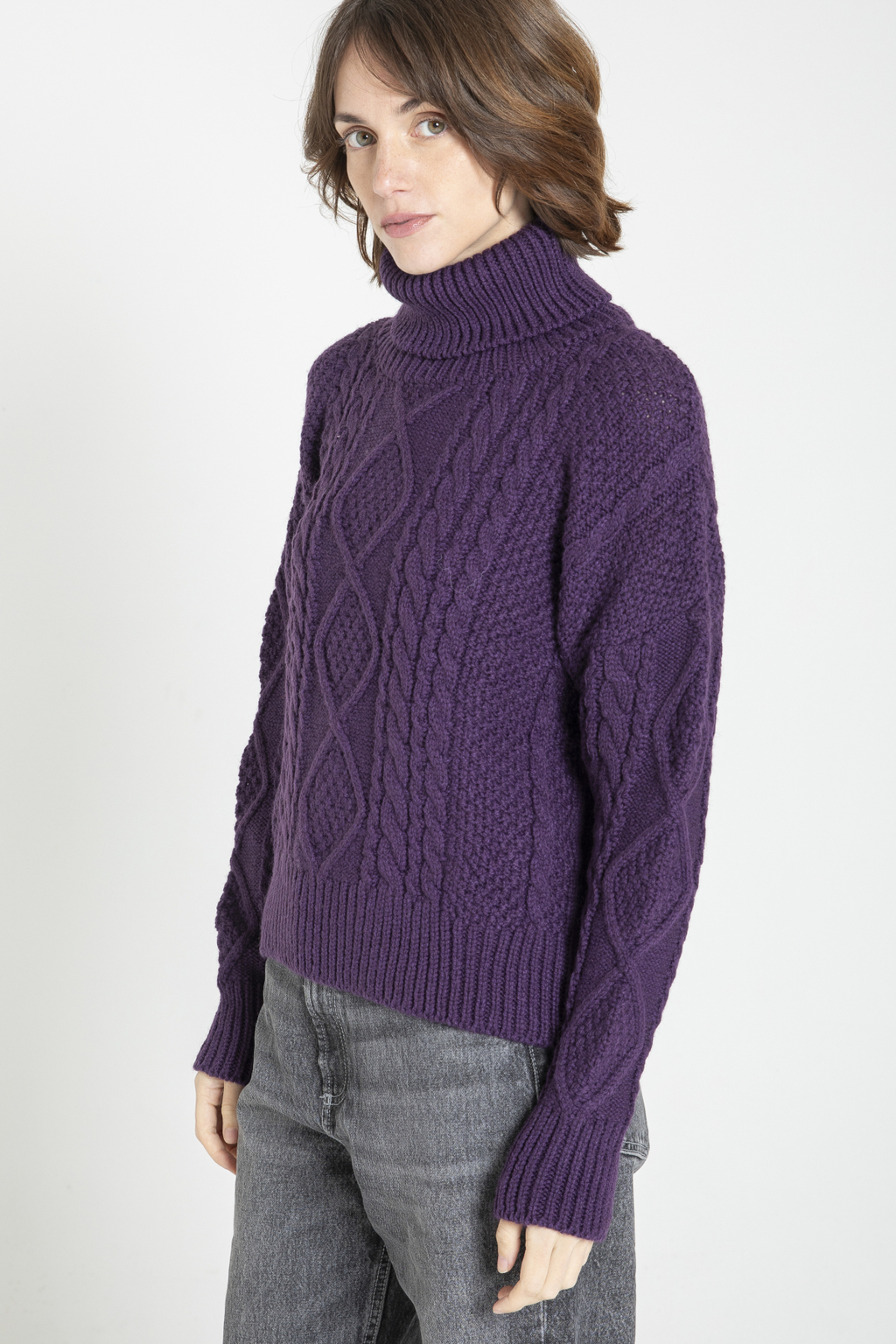 Sweater polera grueso de lana merino, con trenzas y rombos. Hombros caídos. Es corta a primera cadera y ajusta en cintura con puño. Es muy abrigada.Composición:70% lana merino + 30% acrílico.Cuidados de la prenda:Recomendamos lavar a mano con agua fría. No dejar en remojo mucho tiempo. No retorcer ni escurrir. No conviene centrifugar. Secar sobre superficie plana y no colgar. Planchar con temperatura baja y con una tela para evitar el contacto directo con la prenda.Medidas:Compará tus medidas con las de la tabla. Todas tus medidas tienen que entrar en uno de los talles. Tené en cuenta que los tejidos de punto estiran y se acomodan al cuerpo.Las medidas están expresadas en centímetros y pueden variar por sus procesos artesanales.