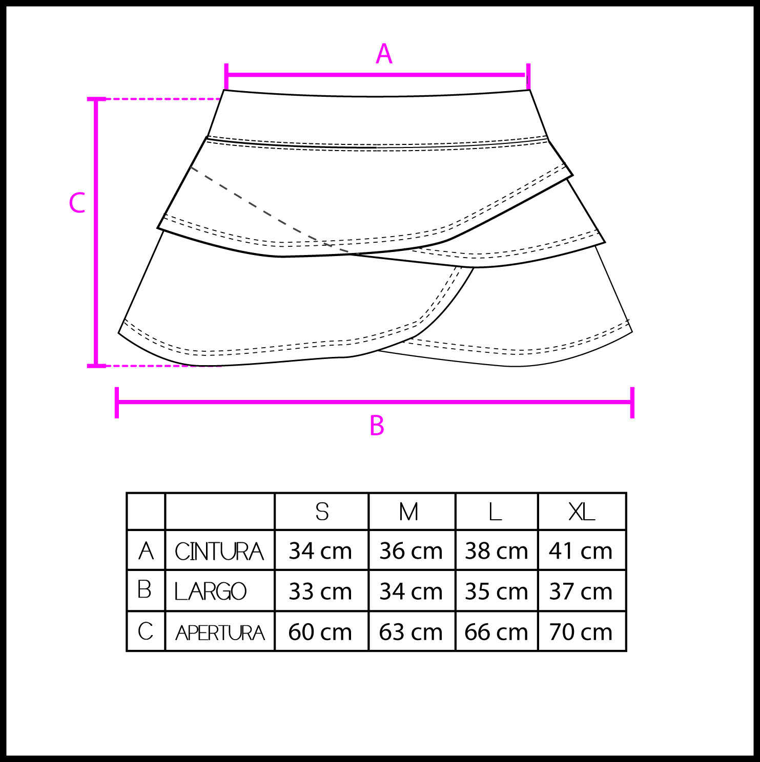 Pollera deportiva con volados superpuestos, viene con calza incorporada.