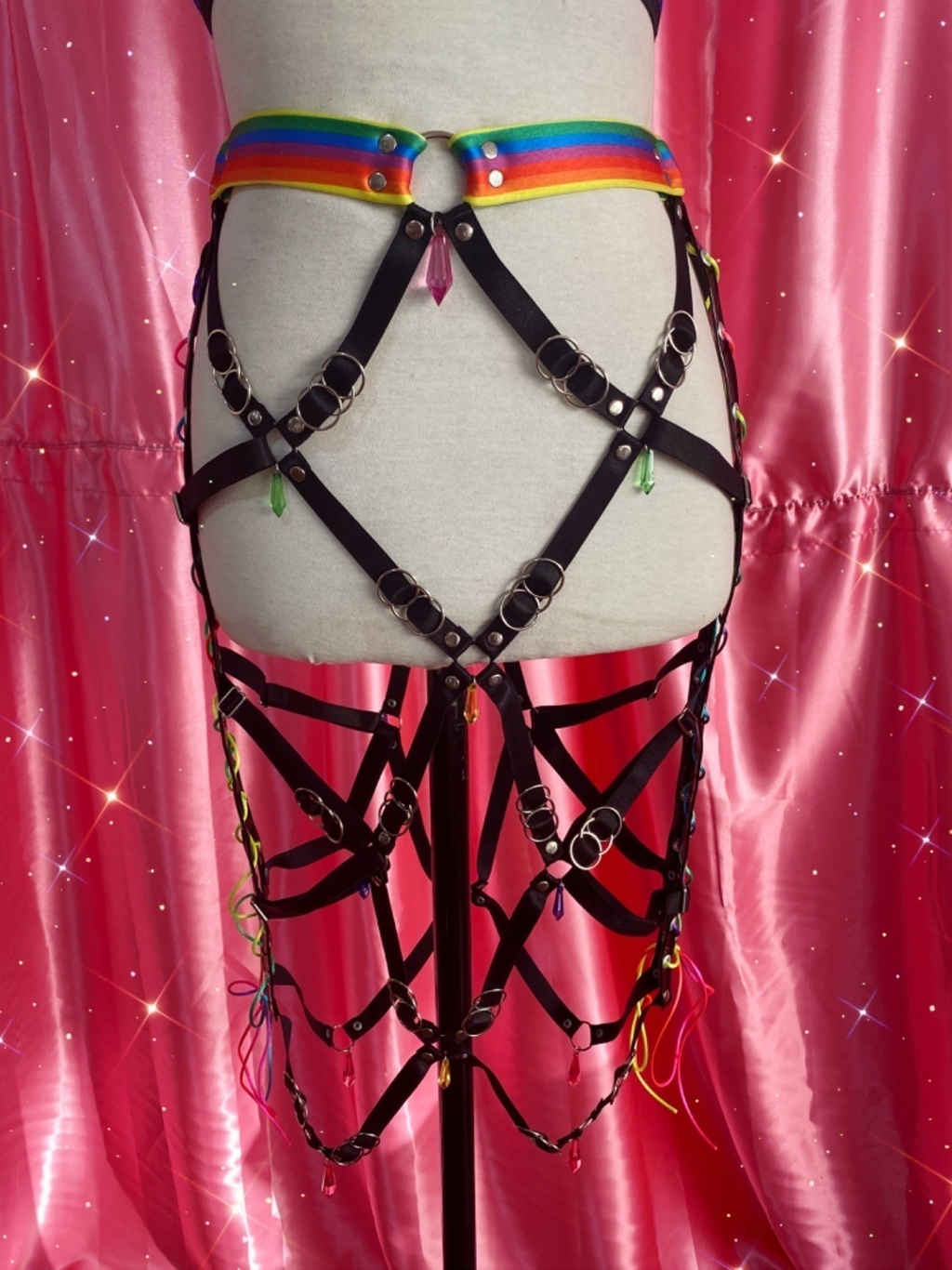 ESta pollera consta de Partes de marroquineria. Entrelazado de tiras, de las cuales algunas son regulables, 70 reguladores, 90 remaches, más de 50 ojales, detalles de gemas colgantes, cadenas, argollas además de 5 metros de cordón para formar los acordonados laterales.Tiene entre 7 y 9 hs de trabajo dependiendo del talle.Al ser una pieza elaborada, el tiempo y la cantidad de diferentes materiales y detalles es muchisimo. Por lo qué una vez que ingresa el pedido, tiene una demora de 7 días hábiles para ser entregado o enviado. Les pedimos porfavor tener paciencia, ya que es una pieza hecha a mano, única, llena de detalles y mantener la prolijidad y llevar al mejor resultado, lleva su tiempo, pero vale la espera 🖤TALLES (en base a contorno de cintura)Talle 1: 60 a 90 cmTalle 2: 91 a 110cmTalle 3: 111 a 120cm