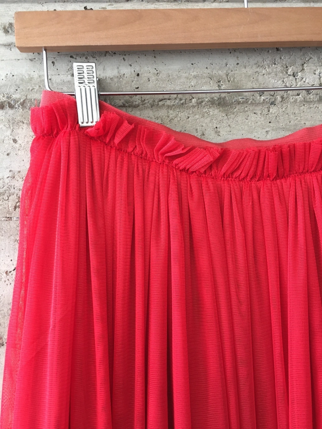 Pollera larga de tul, forrada, con varias capas de tul y detalle fruncido de tul en la cintura. Talle único, llega hasta un L.