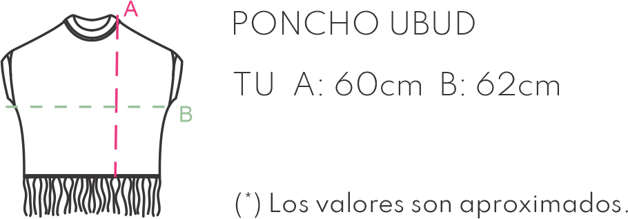 Poncho con flecos tejido a maquina, con dibujo exclusivo de la marca inspirado en los textiles balineses.