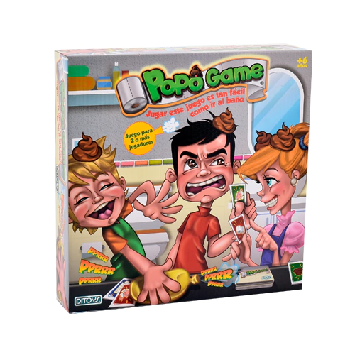 ¡Jugar este juego es tan fácil como ir al baño!Diversión aseguradaContenido de la caja:- 5 popo con elástico- 1 popo cushion- 48 cartas- 1 hoja instructivoCantidad de jugadores: 2 o másEdad recomendada: +6 años